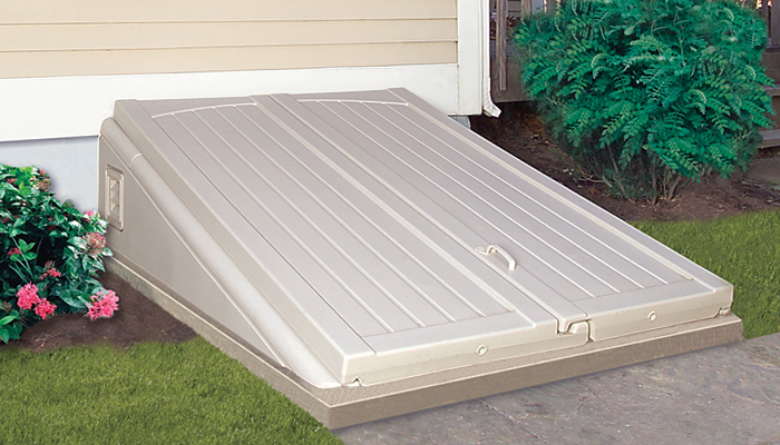 Constructed from high-density polyethylene, Bilco Ultra Series Basement Doors are rust and rot-proof, and do not require painting. Simulating the look and texture of natural driftwood, these basement egress doors are an aesthetic match for most homes. They come with interchangeable side panel inserts to give homeowners some of the functionality of a basement egress window, increasing ventilation and light if desired. This product is only available in Size C (55” wide, 72” long, 19.5” high).